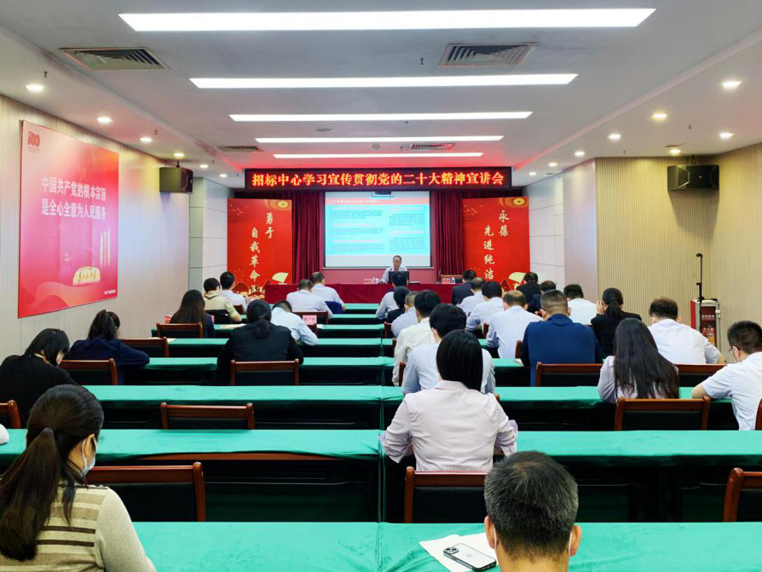 招标中心党委书记、董事长钟青林主持宣讲会,就招标中心深入抓好党的二十大精神学习宣贯工作强调三点意见。一是学习领会要做到学懂弄通。必须在深刻学习领会、全面贯彻落实上扎扎实实下苦功夫、不走过场,确保思想对标、方向不偏、行动有力,真正领会报告的深刻内涵和精神实质。二是培训宣讲要做到全面覆盖。要严格落实集团党委《学习宣传贯彻党的二十大精神工作方案》,广泛开展学习宣贯,确保党的二十大精神覆盖到招标中心每一个角落。三是贯彻落实要做到深入扎实。要坚持学以致用、用以促学,把学习党的二十大精神转化为具体工作思路和工作举措,认真总结和谋划今年底和明年工作,奋力完成集团党委交给的各项任务,为广新集团早日高质量迈进世界500强,建设一流国有资本投资公司作出贡献。