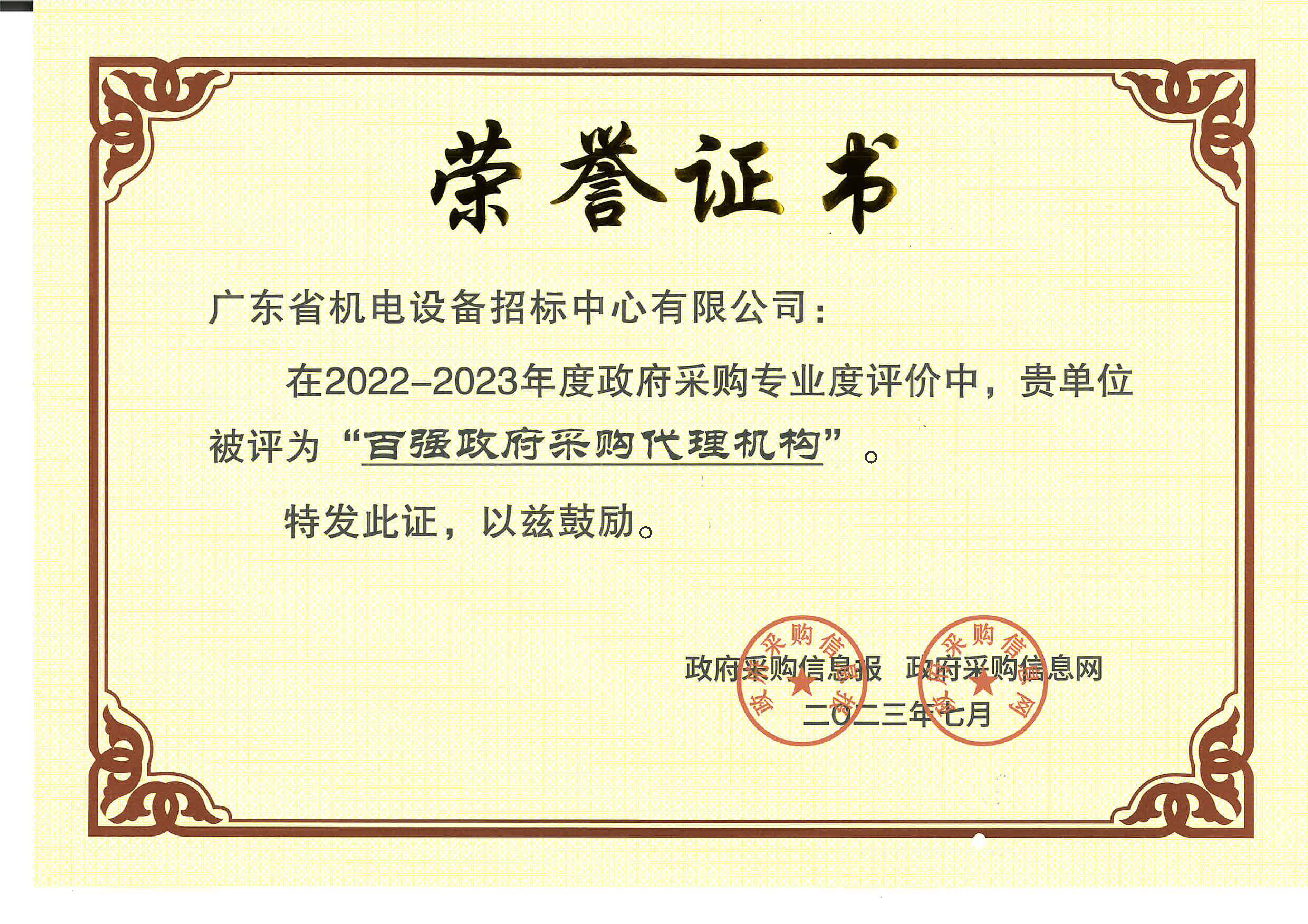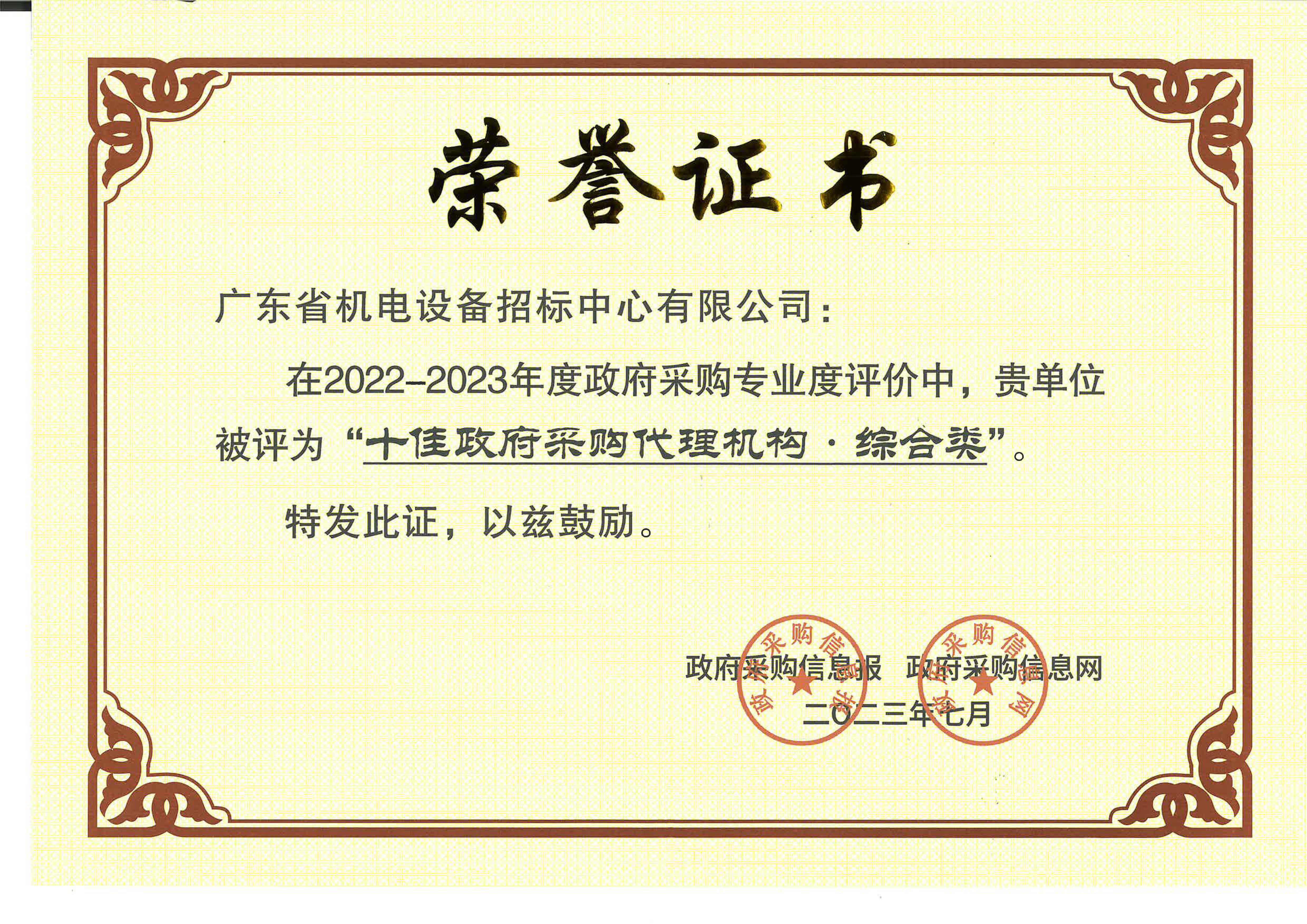 广东省公共资源交易信用优秀单位(2022年度AAA级)