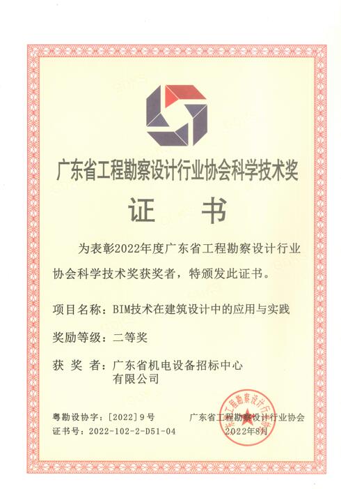 广东省工程勘察设计行业协会科学技术奖(二等奖)-BIM技术在建筑设计中的应用与实践