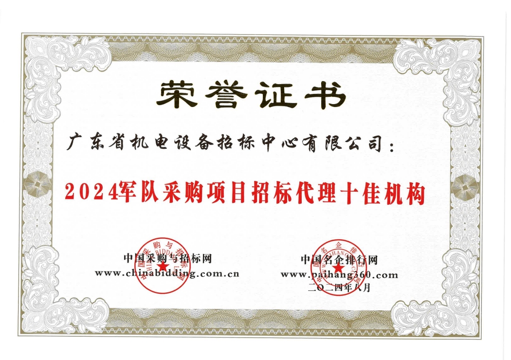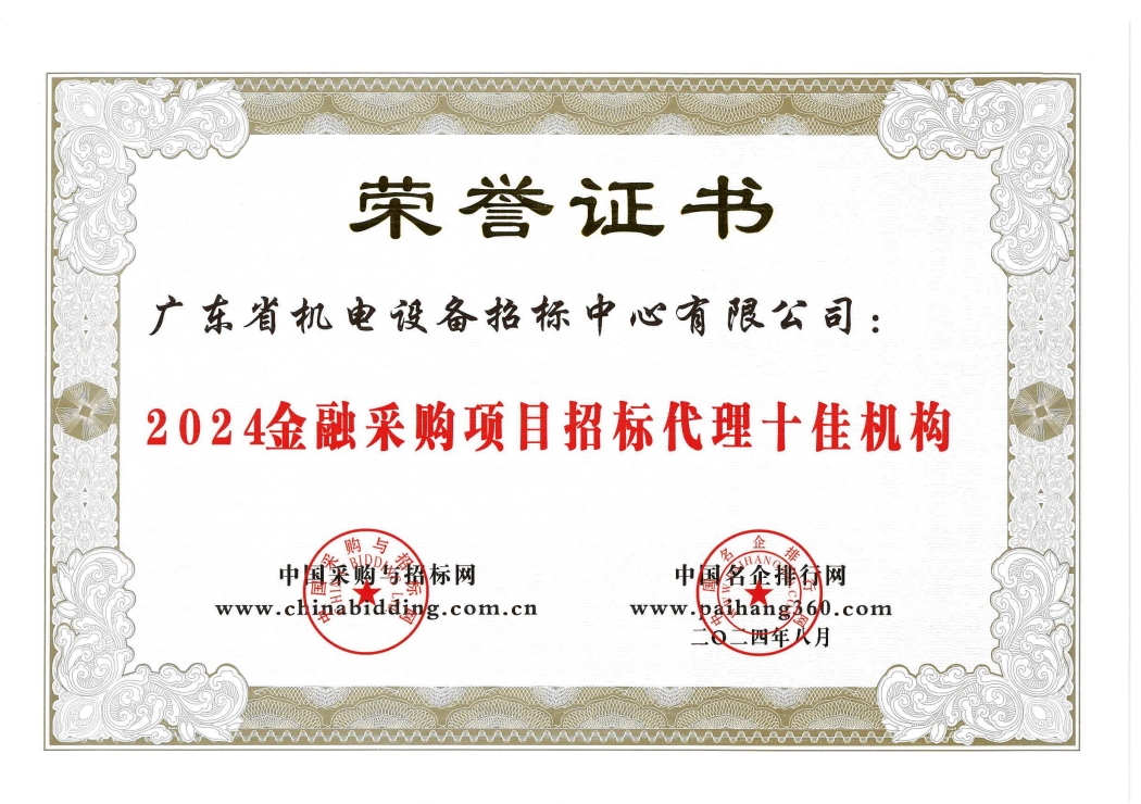 广东省招标投标行业招标代理机构信用评价证书(AAA级)
